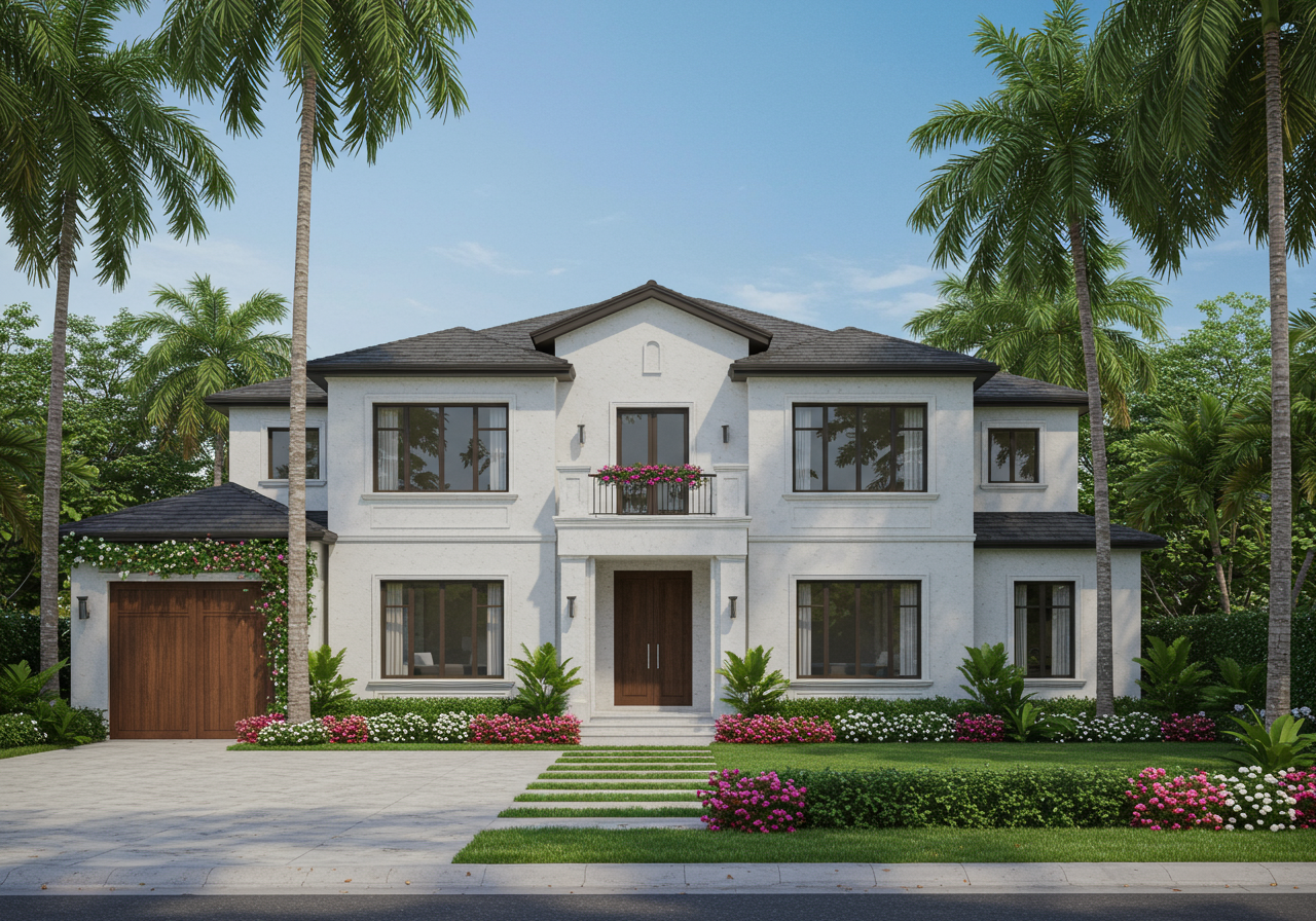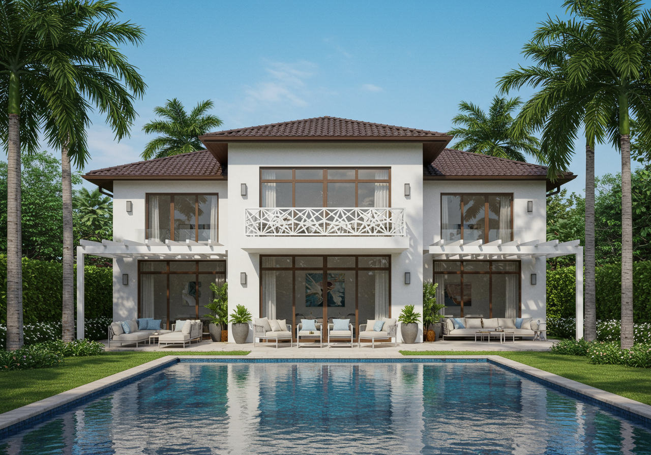 The house stands on a midblock lot of about a quarter-acre and has 5,294 square feet of living space, inside and out. Ridgeview Drive is the third street south of the Palm Beach Country Club.